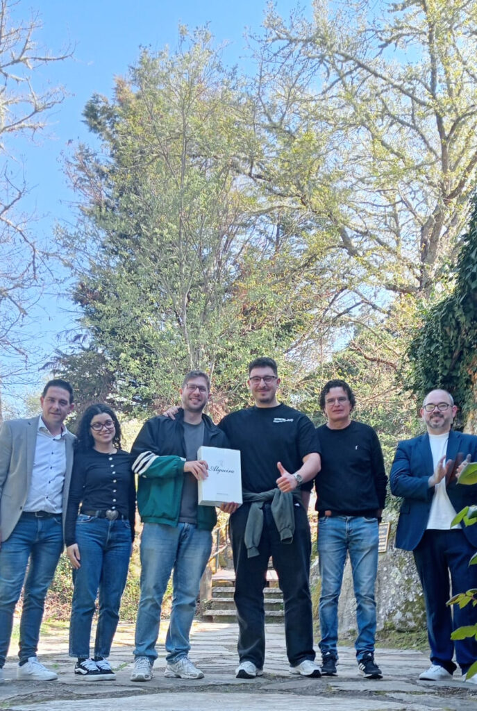 – No primeiro posto: Iago Groba Caride e Maximino Castelo Alonso, alumnos de primeiro curso do Ciclo Formativo de Grao Superior de Vitivinicultura do CIFP A Granxa en Ponteareas, que tamén recibiron outro lote de viño de Adega Algueira.